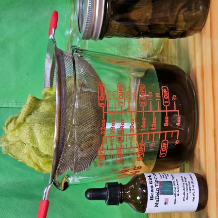 Mullein grows naturally on our farm and can be a very effective provider of cough relief or improvement of respiratory issues. Our tincture is made through dual extraction is great to have handy in the medicine cabinet whenever you need it. Based on the standard dosage, the tincture can provide up of 60 days of relief. The dual extraction process takes a total of 9 weeks and consists of an alcohol extraction followed by a hot water extraction to provide you with the natural nutrients and enzymes available in the mullein leaf. Net weight is 2 ounces.